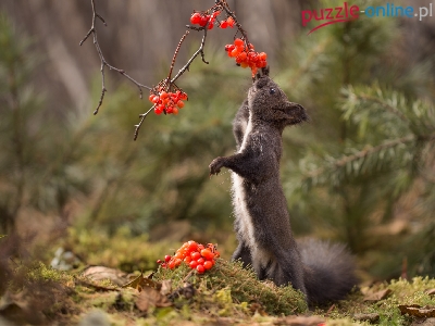 Puzzle Czerwone, Wiewiórka, Gałązka, Jagody