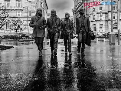 John Lennon, Paul McCartney, Pomnik, Liverpool, Czarno-Białe, The Beatles, George Harrison, Ringo Starr, Anglia