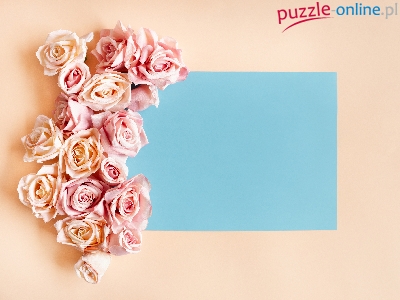 Puzzle Kwiaty, Niebieska, Kartka, Róże