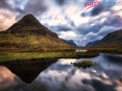 Puzzle Rzeka, Góry, Chmury, Roślinność