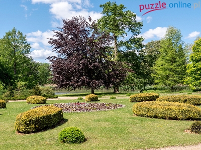 Klomby, Wiesenburg, Niemcy, Park, Drzewa, Staw, Brandenburgia