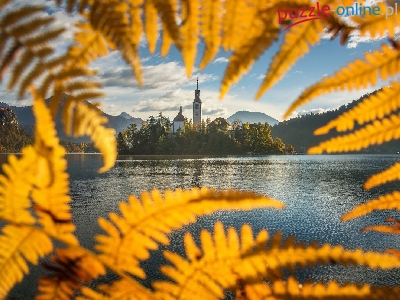 Wyspa Blejski Otok, Słowenia, Paprocie, Jezioro Bled, Kościół