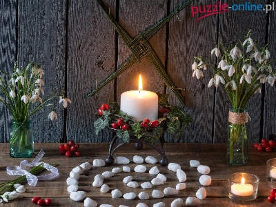 Puzzle Kwiaty, Świece, Kamyki, Przebiśniegi