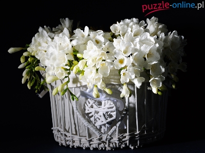 Frezje, Serce, Białe, Kwiaty, Koszyk