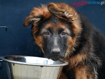 Puzzle Owczarek niemiecki, Pies, Szczeniak, Miska