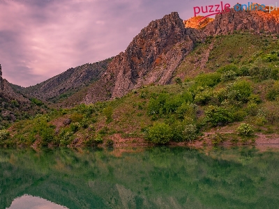 Puzzle Rośliny, Góry, Jezioro, Odbicie