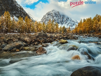 Góry Ałtaj, Rosja, Syberia, Rzeka Aktru, Drzewa, Góra Akturu, Kamienie, Republika Ałtaju