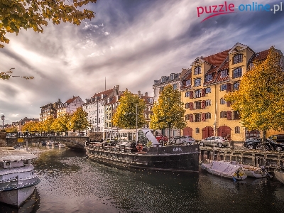 Kopenhaga, Domy, Łodzie, Kanał, Most, Dania, Rzeka, Motorówki