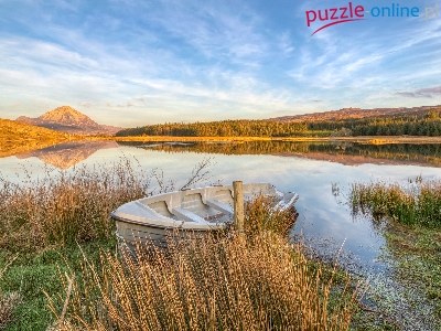 Szczyt Errigal, Trawy, Irlandia, Łódka, Góry, Jezioro Dunlewey, Gweedore