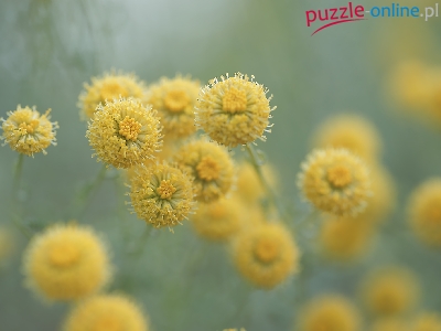Puzzle Kwiaty, Santolina cyprysikowata, Żółte, Zbliżenie