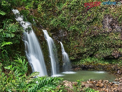Wodospad Upper Waikani Falls, Roślinność, Hawaje, Drzewa, Las, Skały, Maui