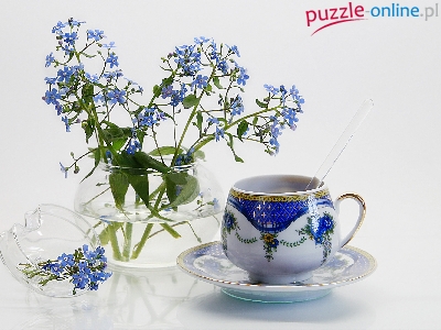 Talerzyk, Niebieskie, Ułudki, Wazonik, Filiżanka, Szklany, Kwiatki