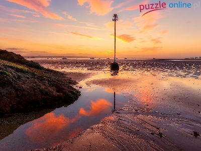 Skała, Tenby, Walia, Zatoka Carmarthen, Plaża, Wschód słońca, Hrabstwo Pembrokeshire