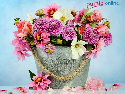 Kosmea, Wiaderko, Kwiaty, Dalie, Bukiet