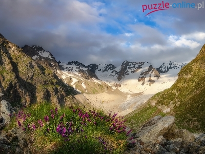 Szczyty, Kamienie, Góry, Ośnieżone, Kwiaty