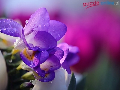 Puzzle Krople, Kwiaty, Frezje, Makro