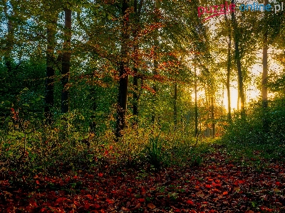 Puzzle Rośliny, Drzewa, Las, Przebijające światło