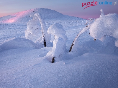 Puzzle Ośnieżone, Zima, Góra, Rośliny