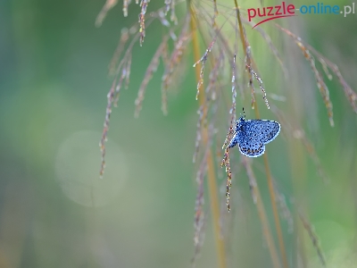 Modraszek ikar, Trawa, Niebieski, Motyl, Źdźbła