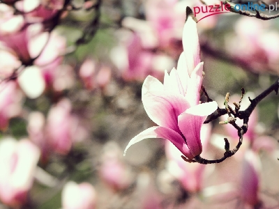 Puzzle Różowo-biała, Gałązka, Kwiat, Magnolia