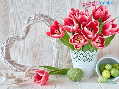 Biały, Wielkanoc, Wiklinowe, Wazon, Pisanki, Tulipany, Wiaderko, Serce