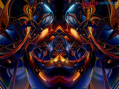Puzzle Granatowo-złota, Grafika 3D, Abstrakcja