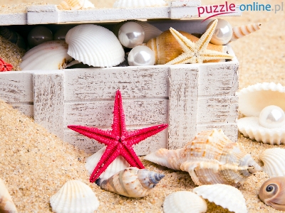 Rozgwiazdy, Piasek, Muszelki, Perły, Skrzynka