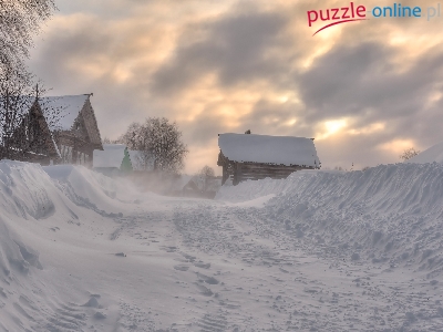 Puzzle Domy, Zima, Śnieg, Wieś