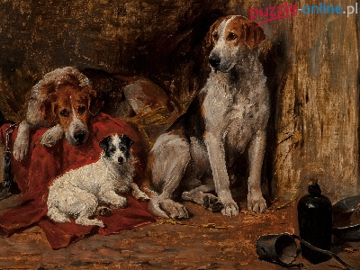 Obraz, Jack Russell terrier, John Emms, Psy, Foxhound, Malarstwo