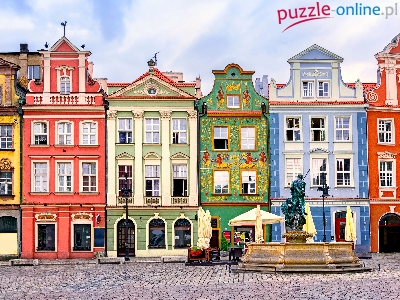 Poznań, Domy, Fontanna, Kamienice, Polska, Rynek, Pomnik