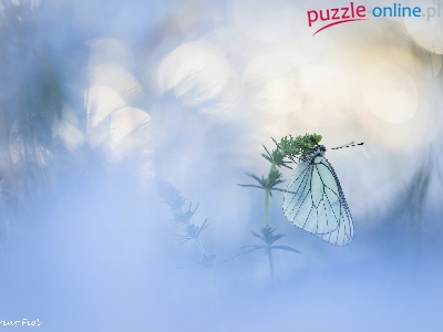Puzzle Roślina, Motyl, Niestrzęp głogowiec, Rozmyte tło