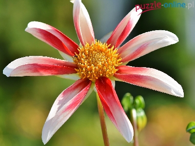 Puzzle Dalia, Kwiat, Czerwono-biała, Zbliżenie