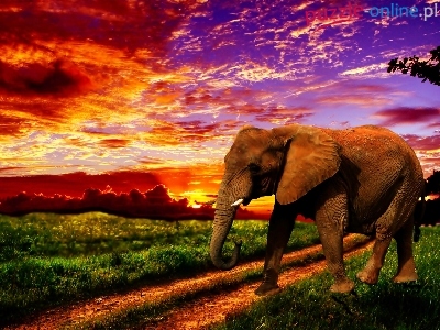 Słoń, Zachód Słońca, Droga