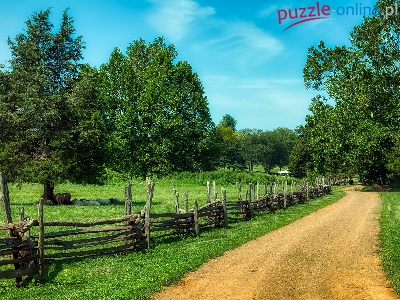 Puzzle Trawa, Droga, Drzewa, Ogrodzenie
