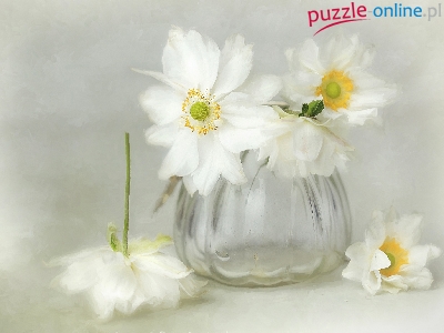 Puzzle Białe, Szklany, Wazonik, Zawilce