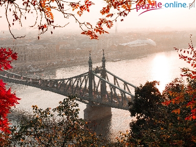 Most Wolności, Jesień, Węgry, Budapeszt, Rzeka Dunaj