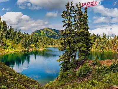 Puzzle Lasy, Jezioro, Drzewa, Wzgórze