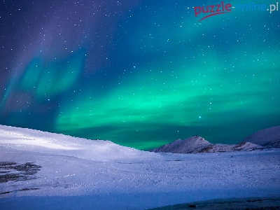 Puzzle Śnieg, Zorza polarna, Zima, Góry