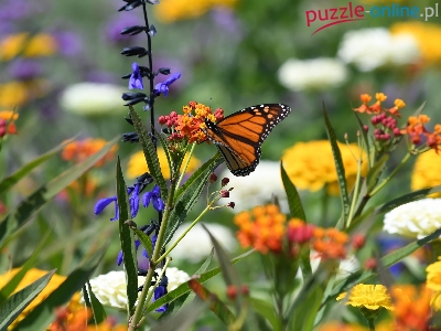 Monarcha, Kwiaty, Motyl, Danaid wędrowny, Kolorowe