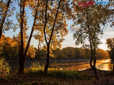 Słońcem, Lasy, Jezioro, Rozświetlone, Drzewa