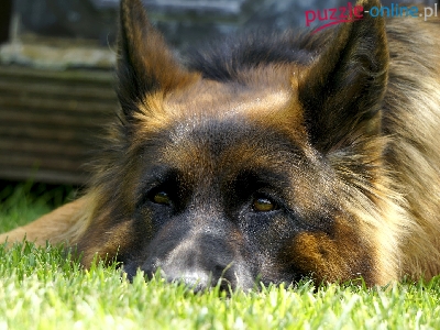 Puzzle Owczarek niemiecki, Leżący, Pies, Mordka