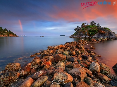 Kamienie, West Vancouver, Kanada, Whytecliff Park, Morze, Drzewa, Vancouver