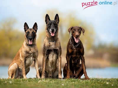 Owczarki belgijskie Malinois, Doberman, Psy, Dwa, Brązowy