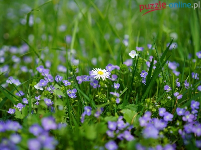 Puzzle Przetacznik ożankowy, Niebieskie, Kwiaty, Stokrotka