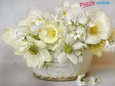 Bukiet, Grafika, Białe, Kwiaty, Doniczka