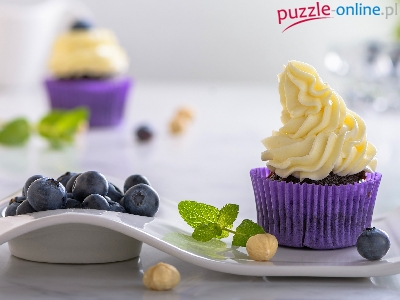 Krem, Jagody, Orzechy, Talerzyk, Babeczka, Mięta