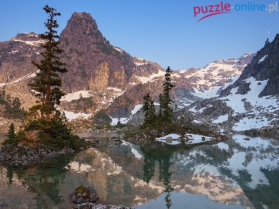Drzewa, Śnieg, Góry, Jezioro, Odbicie