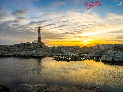 Wybrzeże, Chmury, Norwegia, Wschód słońca, Latarnia morska Eigeroy, Skały, Gmina Egersund