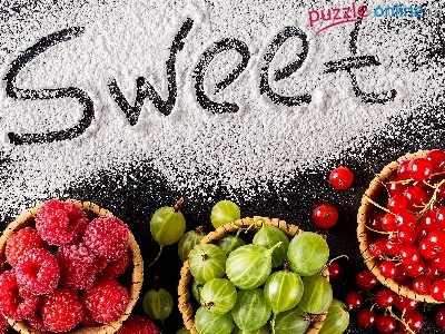 Maliny, Cukier puder, Sweet Owoce, Czerwona porzeczka, Owoce, Agrest, Napis