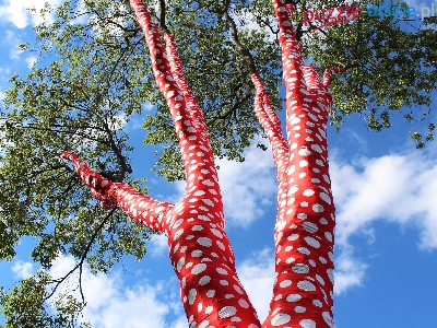 Kolorowe, Materiał, Niebo, Pnie, Drzewa, Czerwone, Kółka